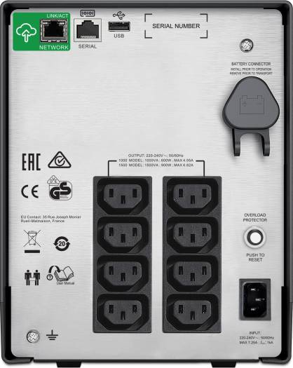 Featuring a tower (TWR) design and a user-friendly LCD display, the SMC1000IC provides real-time status updates including load level, battery health, and operating conditions. Moreover, its energy-efficient operation makes it suitable for continuous use in business and professional environments.
