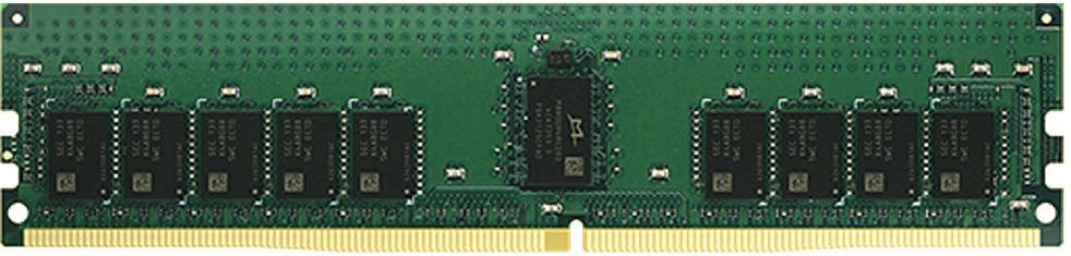 Upgrade the memory in select Synology NAS units using the 16GB DDR4 2666 MHz UDIMM Memory Module from Synology. This single RAM module features a capacity of 16GB, a clock speed of 2666 MHz (PC4-21300), and a 288-pin DIMM form factor. It operates using 1.2V, features Error-Correcting Code (ECC) technology, and is unbuffered.